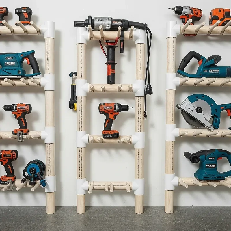 Who knew plumbing supplies could revolutionize your tool storage? PVC pipes offer an incredibly affordable and customizable solution for organizing power tools. Cut pipes at angles to create custom cradles for drills, sanders, and other tools. These holders can be mounted on walls, under benches, or integrated into existing storage systems. I've created entire tool organization systems using nothing but PVC pipes, fittings, and some creativity. The smooth interior prevents tool scratches while the durable material handles weight easily. Different pipe diameters accommodate various tool sizes perfectly. You can paint PVC to match your workshop aesthetic or leave it white for a clean look. Adding end caps creates closed storage for bits and small accessories. This budget-friendly option proves that effective organization doesn't require expensive systems.