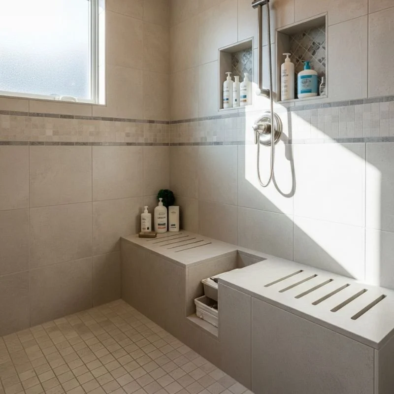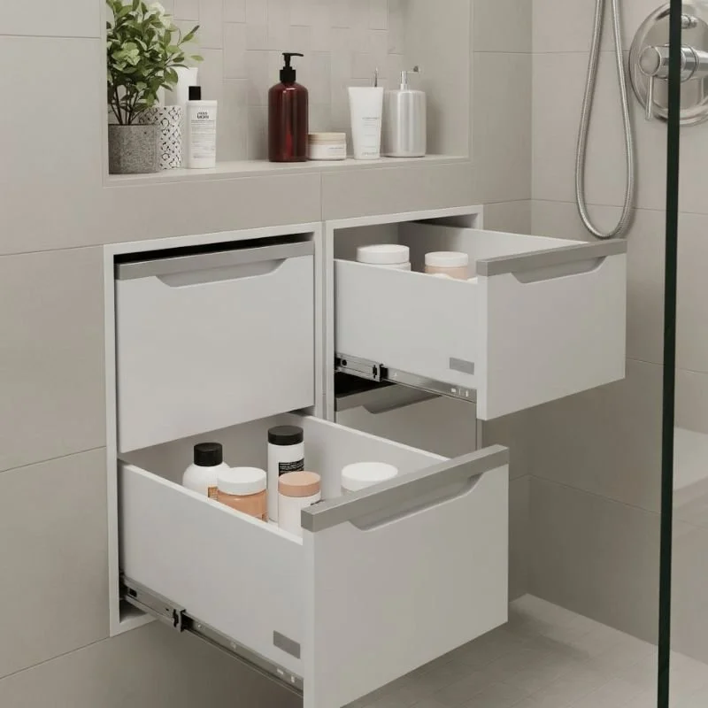 Nothing beats the sleek functionality of built-in shower niches for permanent, stylish storage. These recessed shelves integrate seamlessly into shower walls, creating storage without sacrificing space. Planning during construction or renovation yields the best results, though retrofit options exist for existing showers. Standard sizes fit between wall studs, while custom niches accommodate specific storage needs. Waterproofing is crucial to prevent moisture damage behind walls. Tile the niche to match surrounding walls or create accent features with contrasting materials. Multiple niches at different heights serve various family members comfortably. Add LED lighting for premium spa vibes and easier product identification. Sloped shelves ensure proper drainage, preventing mildew growth. The investment in built-in storage pays dividends in home value and daily convenience. Professional installation ensures longevity and proper water management.