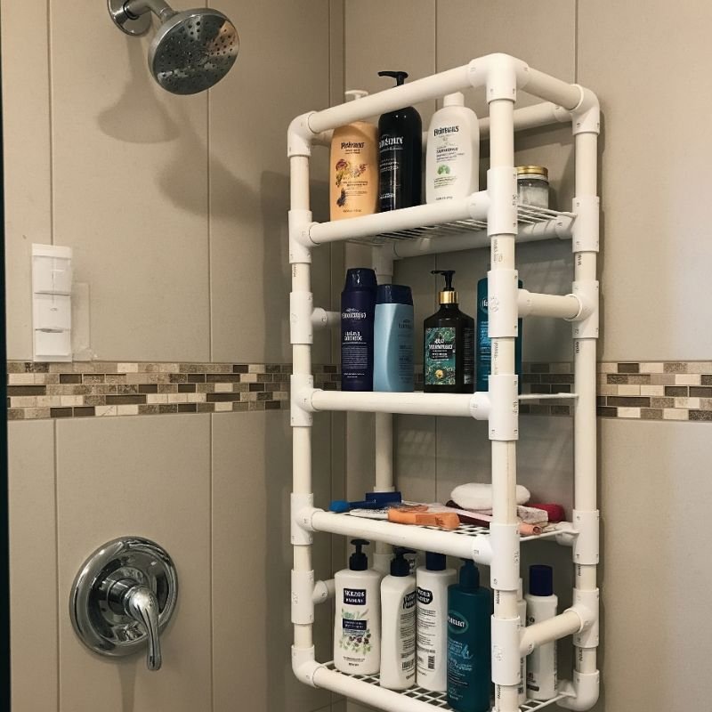Get creative with budget-friendly DIY storage using PVC pipes cut and configured for custom organization. These lightweight tubes create perfect holders for tall bottles, razors, and toothbrushes. Cut pipes to various lengths accommodating different items. Sand edges smooth preventing cuts or snags. Mount horizontally for bottle storage or vertically for tools. Connect pieces using standard plumbing fittings for elaborate configurations. Paint pipes to match bathroom colors or leave white for clean looks. Drill drainage holes preventing water accumulation inside tubes. The waterproof material resists mold and mildew naturally. Cost-effectiveness allows experimentation with different arrangements. Hot glue or construction adhesive provides secure mounting. The customizable nature means perfect fits for any shower space. Share your unique designs inspiring others' creativity.