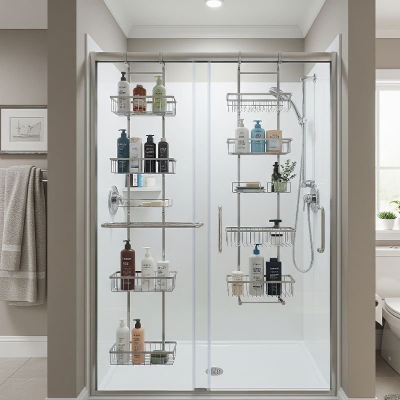 Transform your shower door into valuable storage real estate with specialized organizers designed for glass surfaces. Over-door caddies hang securely without interfering with door operation, providing instant accessible storage. Magnetic versions work on metal-framed doors, while suction models attach to glass panels. These solutions keep products at eye level for easy grabbing. Some feature adjustable baskets accommodating various bottle sizes. The door location means items stay drier than in direct water spray. Double-sided designs offer storage both inside and outside the shower. Look for padded hooks preventing glass scratches and door damage. Slim profiles ensure doors close properly without obstruction. The visibility factor helps track product levels and prevents forgotten items. Remove and clean periodically to prevent soap scum buildup on door surfaces.