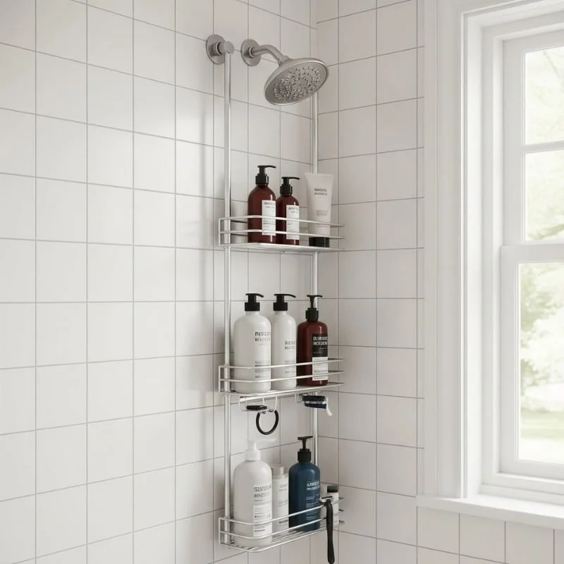 The classic hanging shower caddy remains a favorite for good reason: it's affordable, portable, and requires zero installation. These versatile organizers hook over your showerhead or shower door, instantly creating multiple tiers of storage. Modern versions feature rust-resistant materials like stainless steel or coated aluminum that withstand constant moisture. Look for caddies with adjustable shelves to accommodate tall bottles and built-in hooks for loofahs and razors. The best designs include drainage holes preventing water accumulation and soap scum buildup. Some models even feature suction cup stabilizers to prevent swaying. Choose caddies with rubberized hooks to protect your fixtures from scratches. The portability factor makes them perfect for renters or anyone who likes rearranging their shower setup regularly. With prices ranging from budget-friendly to premium, there's a hanging caddy for every bathroom style.
