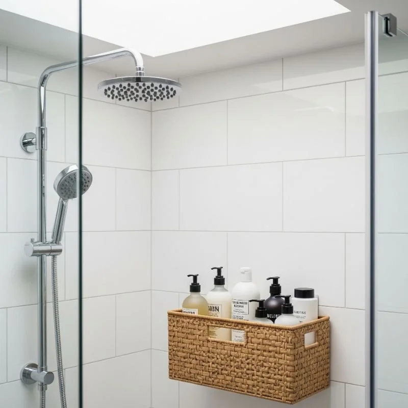 Create permanent storage solutions with tile-mounted baskets that integrate seamlessly with shower walls. These wire or solid baskets attach directly to tile surfaces using specialized adhesives or screws. The installation provides rock-solid stability for heavy bottles and jars. Drainage designs prevent water accumulation and soap scum buildup. Multiple basket sizes create customized storage systems. Rust-resistant coatings ensure longevity in wet environments. The open visibility makes finding products effortless. Position baskets at convenient heights for different users. Some feature removable inserts for easy cleaning. The permanent mounting eliminates daily adjustments or fallen caddies. Professional installation ensures proper waterproofing around mounting points. Choose finishes complementing existing fixtures for coordinated looks. The investment in permanent storage pays off through years of reliable use.