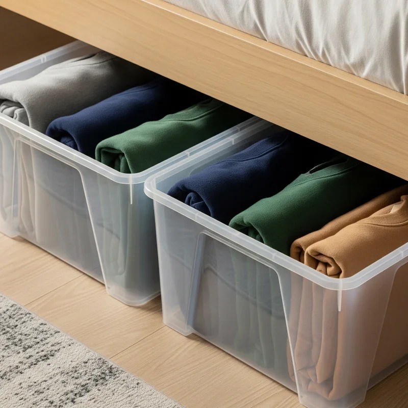 Capitalize on the forgotten real estate under your bed with sliding storage boxes designed specifically for seasonal sweatshirt storage! These low-profile containers fit perfectly in the typically wasted space, holding numerous sweatshirts out of sight. Choose boxes with wheels for easy access without back-breaking bed lifting or crawling underneath. Clear plastic lids allow quick identification while protecting contents from dust bunnies and pet hair. The rectangular shape maximizes under-bed space usage while compartments within boxes keep sweatshirts organized by type. This solution works brilliantly for rotating seasonal collections, keeping summer hoodies accessible in winter and vice versa. Label boxes clearly for quick retrieval when weather unexpectedly changes.
